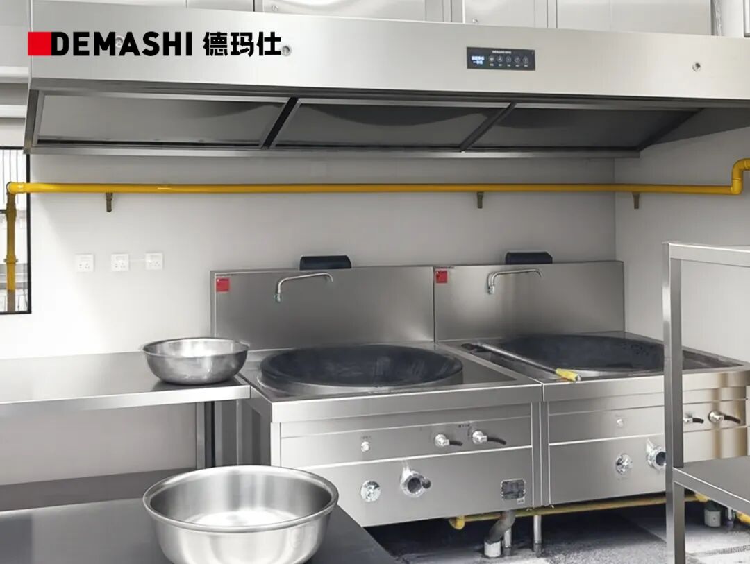 针对原有厨房的油烟与噪音痛点,德玛仕带来了全新方案——高效环保静音的油烟净化一体机,并搭配定制新风系统。该方案在实现油烟高效净化的同时,显著降低了设备运行噪音,改善了厨房空气质量,积极响应了国家环保政策。