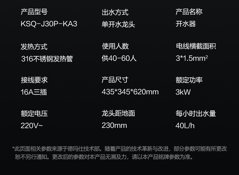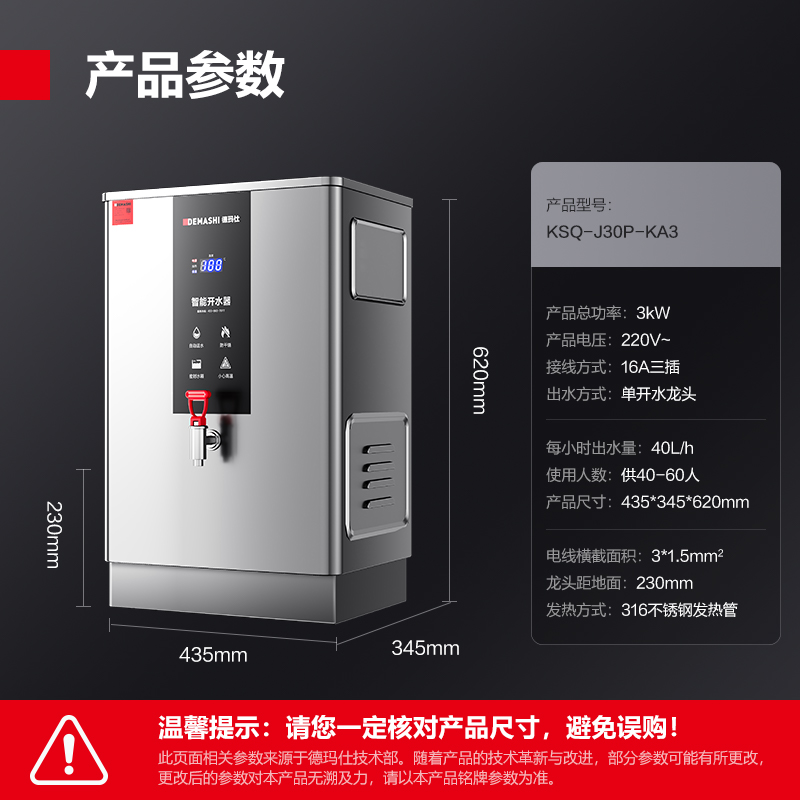 德玛仕(DEMASHI)开水器 商用开水机奶茶店餐厅吧台全自动电热开水器商用饮水机 开水机商用40L/h KSQ-J30P-KA3