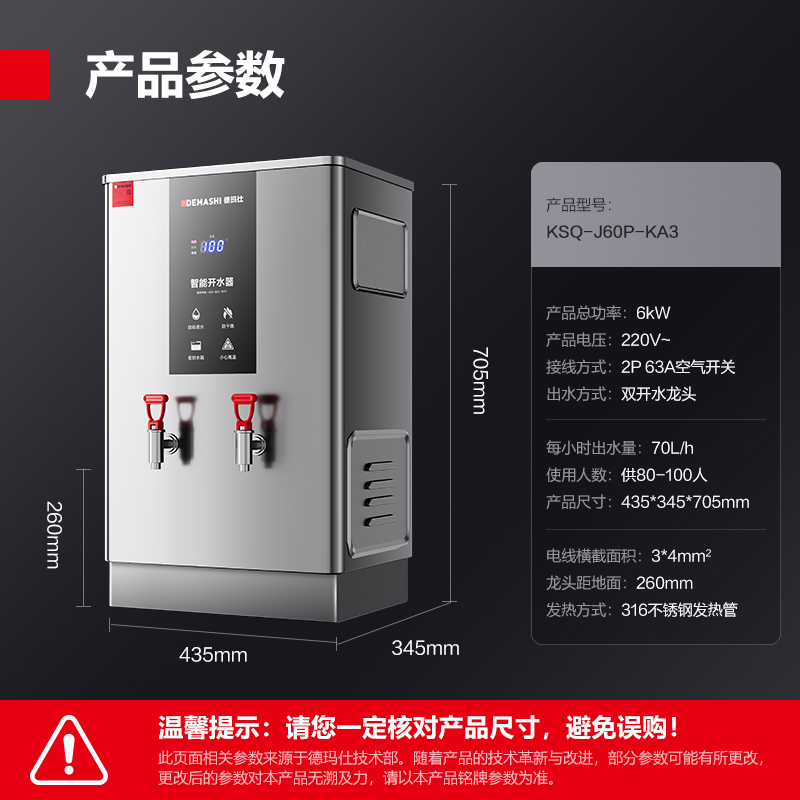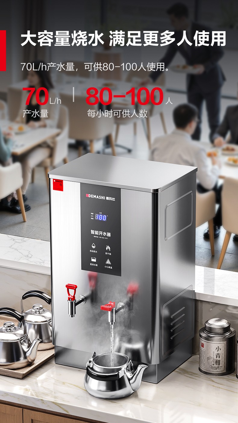 德玛仕(DEMASHI)开水器商用 智能电热开水机全自动进水不锈钢烧水器开水炉热水桶学校工厂工地饭店饮水机大容量 热销-数显款【70L/H】220V丨6Kw三级过滤 KSQ-J60P-KA3