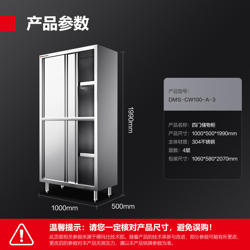 您的位置:首页 > 白钢调理设备 > 四门储物柜 > 德玛仕(DEMASHI)商用厨房置物架多层储物柜 304不锈钢款 DMS-CW100-A-3丨1米宽丨304不锈钢