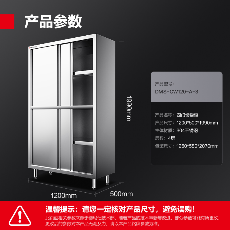 您的位置:首页 > 白钢调理设备 > 四门储物柜 > 德玛仕(DEMASHI)商用厨房置物架多层储物柜 304不锈钢款 DMS-CW120-A-3丨1.2米宽丨304不锈钢