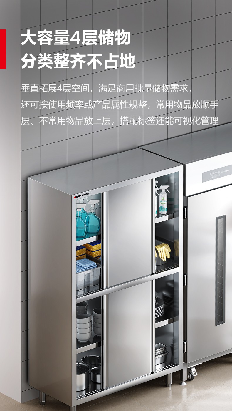 您的位置:首页 > 白钢调理设备 > 四门储物柜 > 德玛仕(DEMASHI)商用厨房白钢置物架多层储物柜 DMS-CW150-A-3丨1.5米宽丨304不锈钢 201