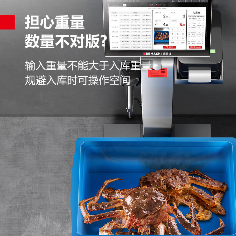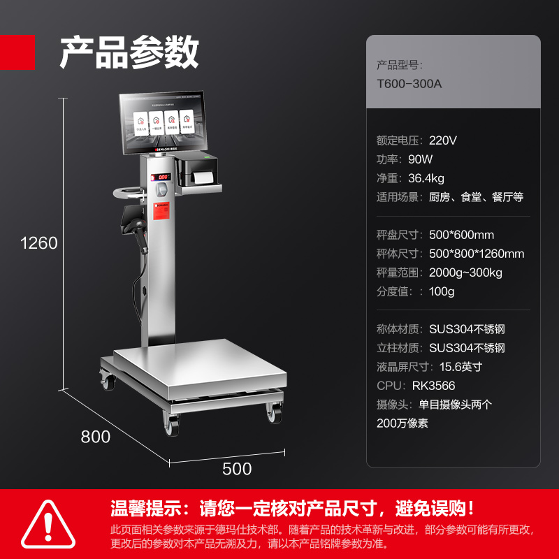 德玛仕(DEMASHI)智慧食堂厨房 智能出入库磅秤 高精度精准称重 进销存报表导出 电子商用不锈钢防水充电T600-300A 单机工程款不带智能留样仪丨T600-300A