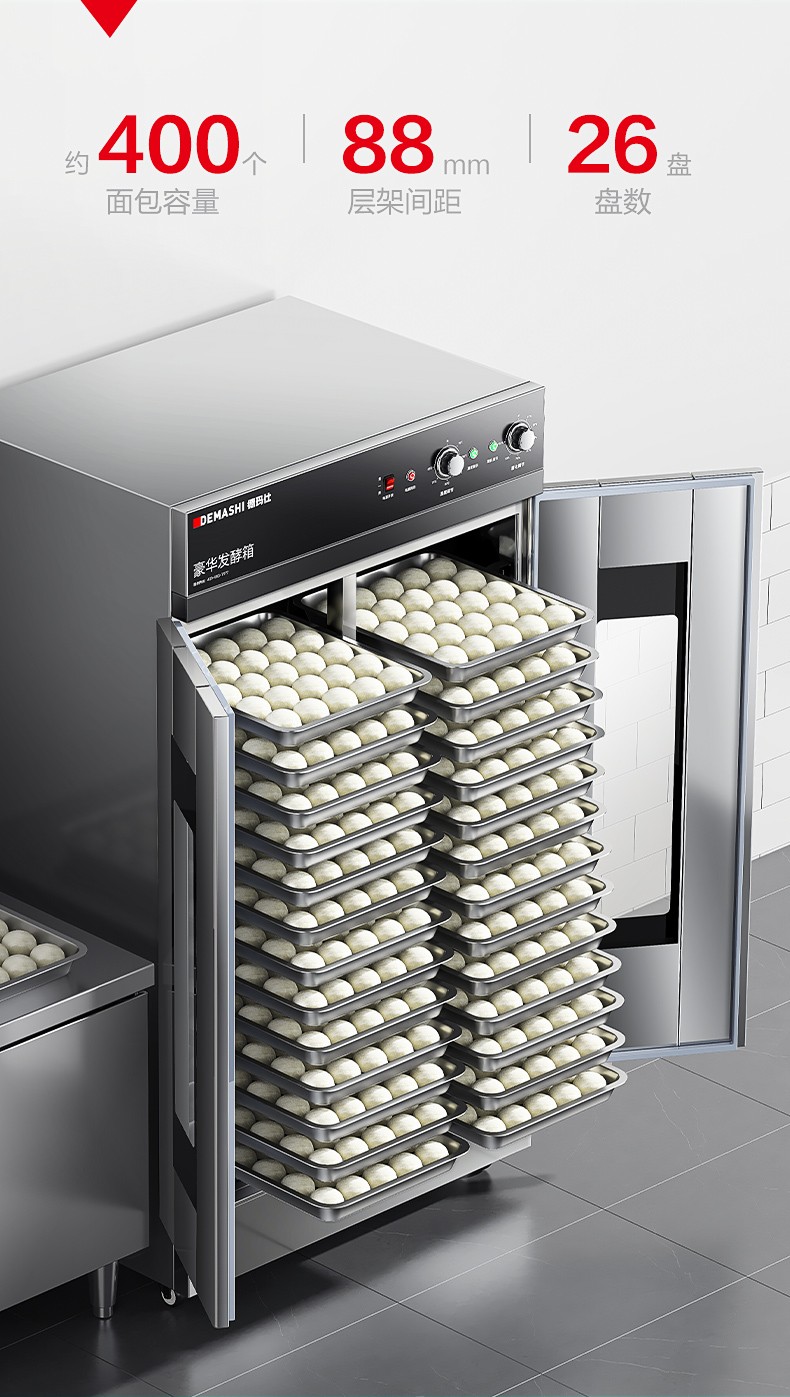 德玛仕(DEMASHI)商用发酵箱 醒发箱商用 全自动面包馒头发酵机 不锈钢恒温发酵柜 【温湿双控】双门26层丨不带盘 FJX-26J-L2