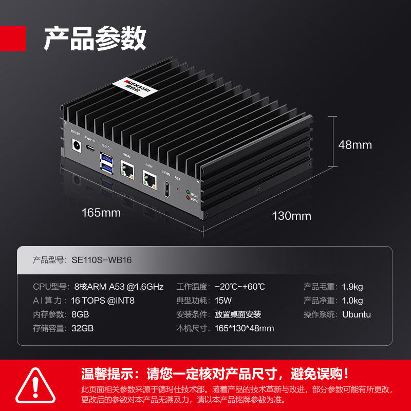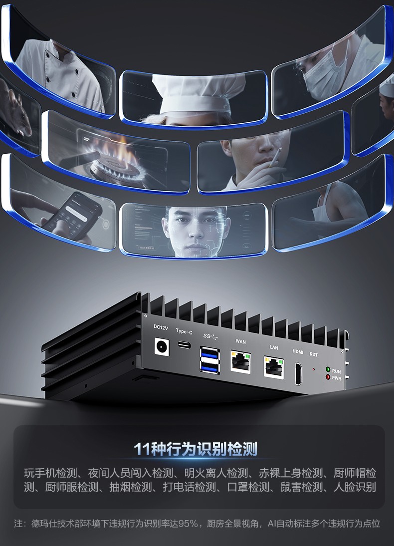德玛仕(DEMASHI)智慧智能食堂厨房 边缘计算微服务器 AI行为识别边缘服务器(8路) SE110S-WB16丨16路行为识别