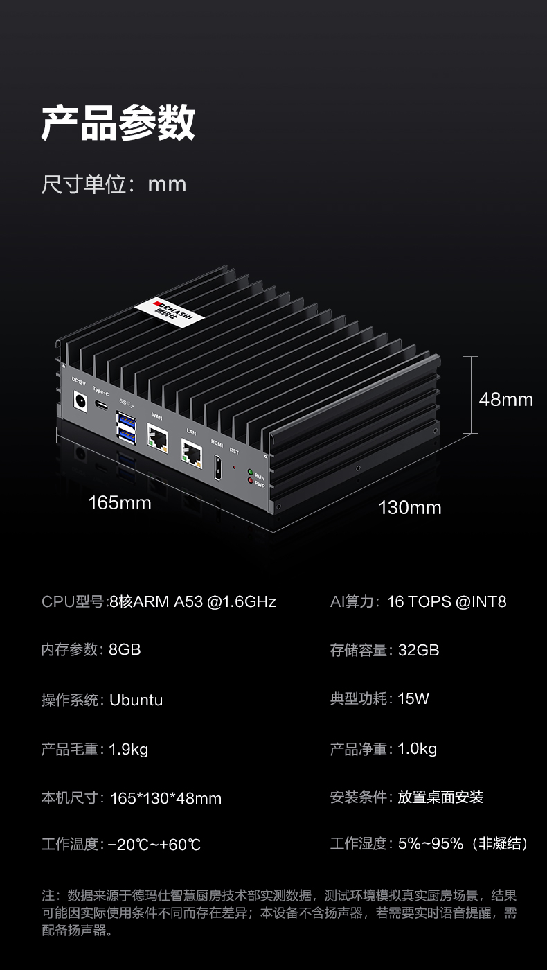 您的位置:首页 > 餐饮设备 > 智慧食安 > 德玛仕(DEMASHI)智慧智能食堂厨房 边缘计算微服务器 AI行为识别边缘服务器(8路) SE110S-WB16丨16路行为识别