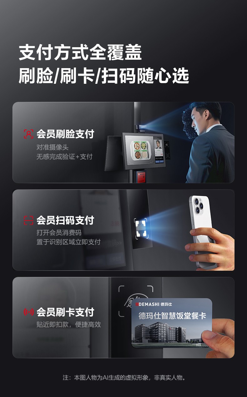 德玛仕智慧智能厨房食堂 桌面式AI识别 智能餐台 视觉识别 自助结算人脸支付一体机C50 小碗菜自动识别丨智能结算丨视觉识别